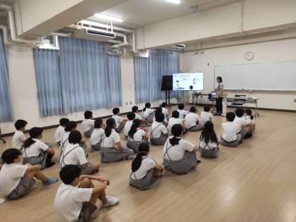 発育測定の時間を活用して、養護教諭による保健指導を行っています。