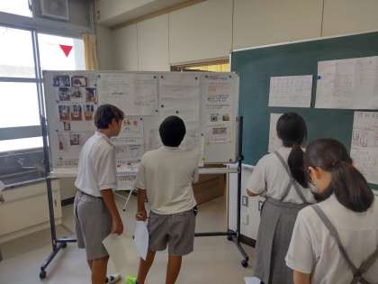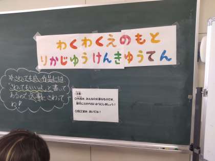 夏休みに調べた理科に関する自由研究を展示、参観しています。