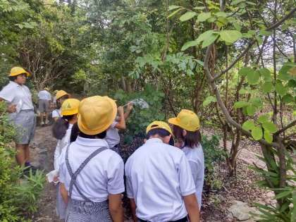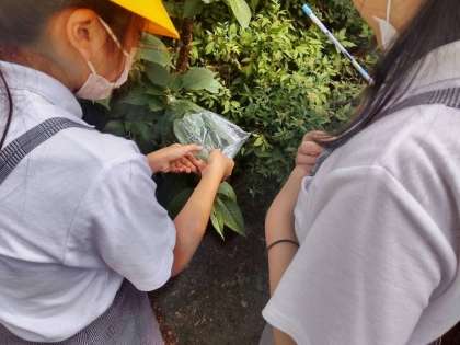 光合成で二酸化炭素の量が減るのかを実験で確かめています。
