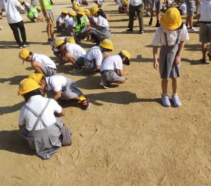 今日は、運動会に向けての石拾いをみんなで行いました。