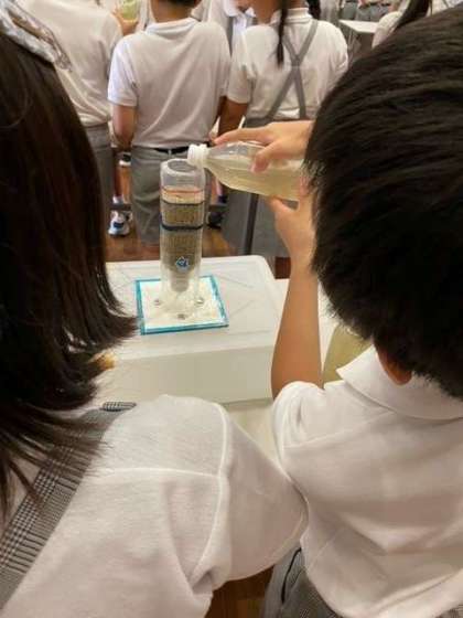 普段、私たちが使っている水がどのようにして送られているのかを実験などを通して学びました。