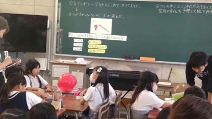 閉じ込められた空気のイメージ図を描くことで、体積や圧し返す力の変化にに着目する学習です。