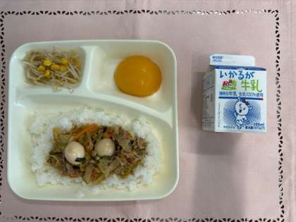 給食は、黄桃を二つに割り、シロップづけにした缶づめです。