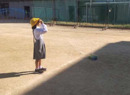 太陽観察用のめがねを使って、太陽の観察も行います。