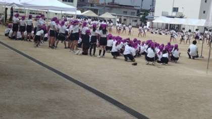5年生と6年生がそれぞれ相手の団体演技を見学しました。