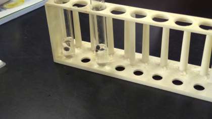 写真ではわかりにくいのですが、薄い塩酸に入れたスチールウールからは小さな泡が発生しています。