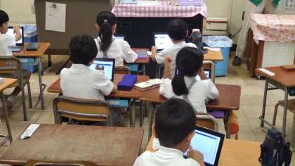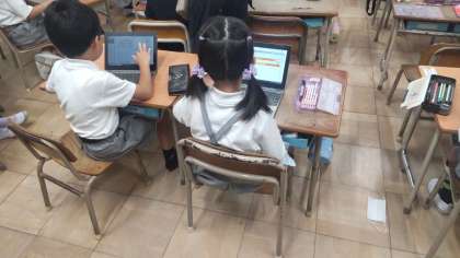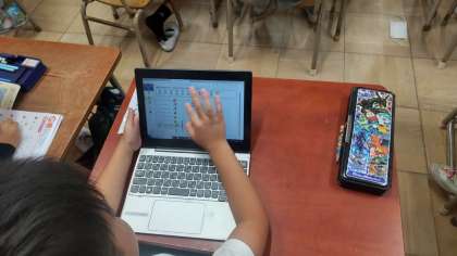 課題ができた子から、スタディーサプリを使って自主学習をしている様子です。