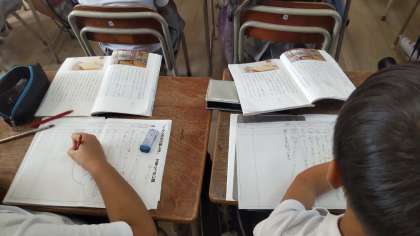 教科書を使って、和と洋の特徴をまとめる学習です。