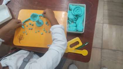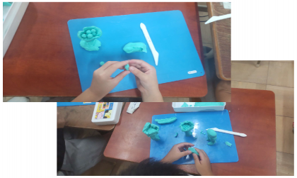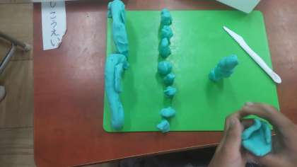 粘土で、運動会で一番印象に残った場面を作成しています。