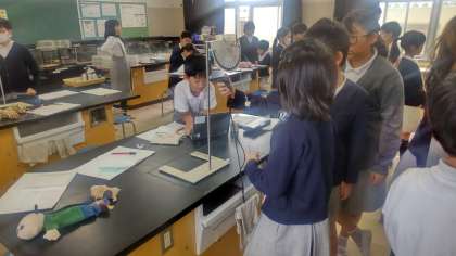 おもりの重さやひもの長さなどの条件を変えることで、一往復にかかる時間の変化を確かめています。