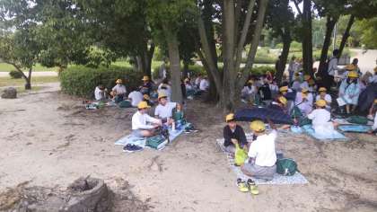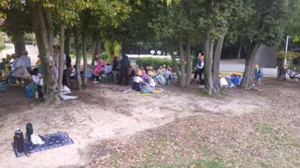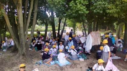 雨が少し降ってきたので、木の下でお弁当を広げました。
