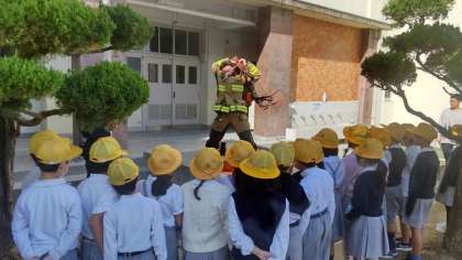 火災の通報があると、1分以内に装備品を身に着け出動するそうです。