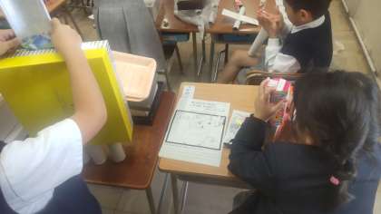大きな箱を使う子、円柱で足を作る子、どの子も楽しそうです。