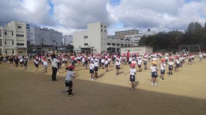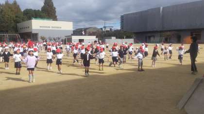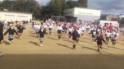 今日は1,2年生が音楽に合わせて楽しく跳んでいました。。