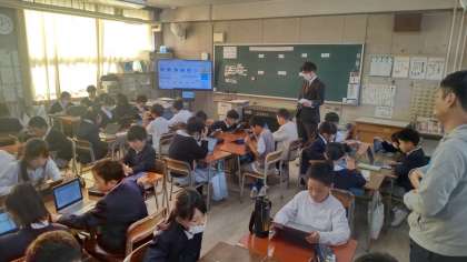 PCを使い、意見の交流を図る様子が見られました。
