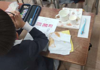 歯科衛生士の先生にご来校いただき、歯磨き指導をしていただきました。