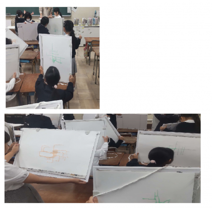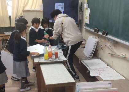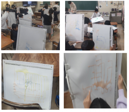 絵具を道に見立てたり、建物に見立てたりして描いていきます。