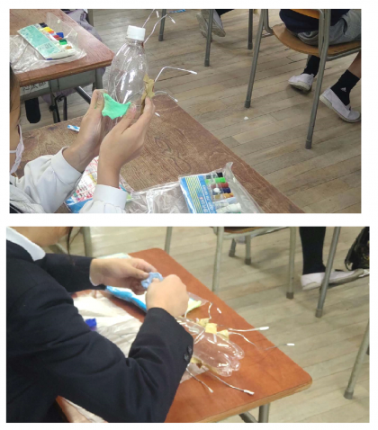 ペットボトルを使って、「きれいな虫」を作っている様子です。