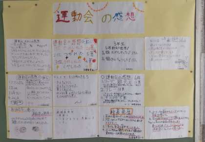 新聞委員会作成の運動会号が職員室前の掲示板に掲示されています。