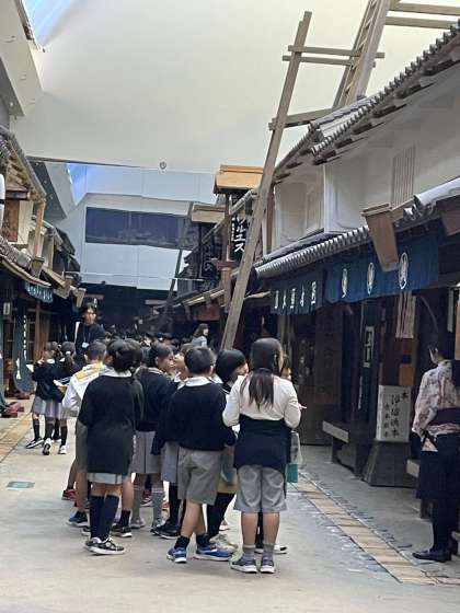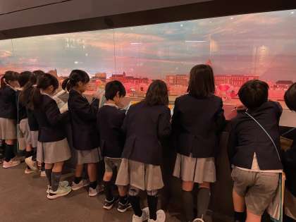 長い長い天神橋筋商店街を通って、くらしの今昔館に行きました。昔の大阪の街の様子や生活道具の展示を見学しました。今と昔の違いをいろいろと感じながら、気が付いたことをメモに残しました。