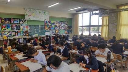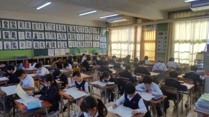 2時間目に算数、3時間目に理科、5,6年のみ4時間目に英語のテストを行います。