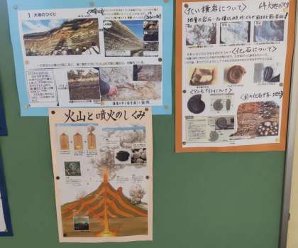 復習となるような掲示物、児童の興味を惹くような物、理科補助員さんを中心に掲示しています。