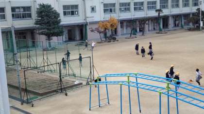 寒い中でも、子ども達は運動場で元気に体を動かしています。