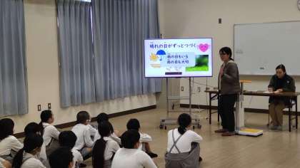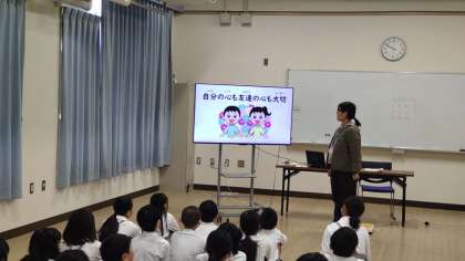 発育測定の前の保健指導は「心の天気」です。