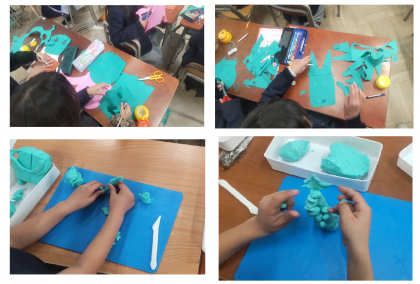 冬休みをテーマに粘土で思い出などを作っていました。