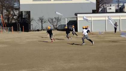 風が無くて難しいコンディションでしたが一生懸命に走り、凧をあげていました。
