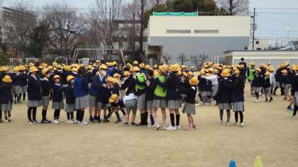 低学年の子ども達が、高学年の児童たちと楽しそうにじゃんけんをしていました。