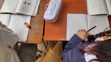教科書の文章を例にして、自分が選んだ2つの物の似ているところと違うところを文章に表していました。