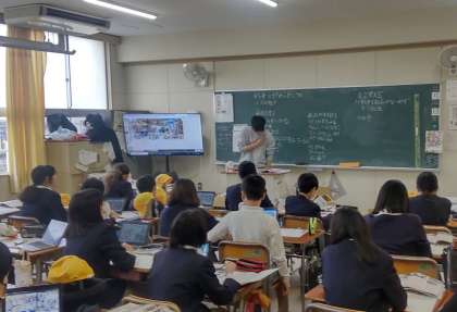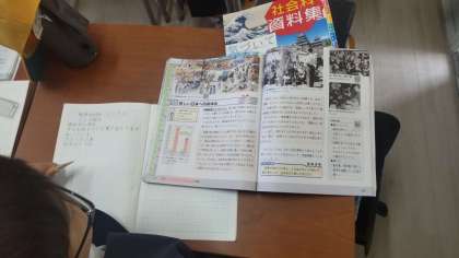 青空教室で学習する子ども達を映した写真が教科書に載っています。