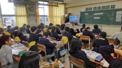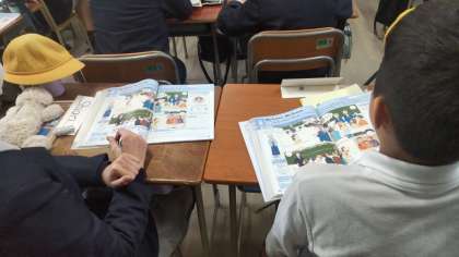 大型モニターを使うと目からの情報も入るので、英語の学習に有効です。