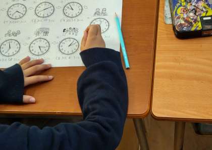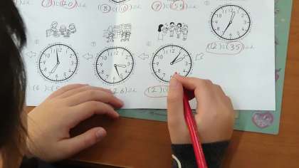 さすが榎本小学校の1年生です、みんなしっかり時刻を読めていました。