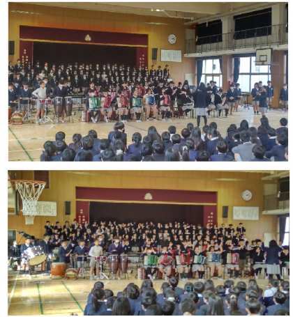 6年生の演奏会に、榎本幼稚園の園児、5年生の児童と一緒に参加しました。