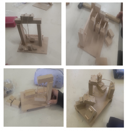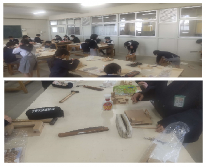 のこぎりやかなづちを器用に使い、楽しい作品に仕上げています。