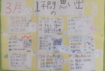 クラスでインタビューをして、1年間で最も印象に残った行事をランキング形式で発表しています。