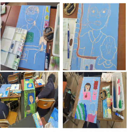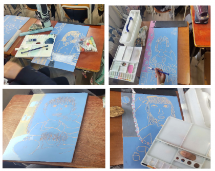 黒の画用紙に印刷するので、白の絵具を混ぜることできれいな発色なります。