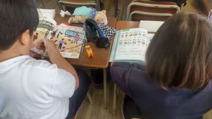 昨年度と同じC-NETの先生なので、子ども達もリラックスして学習に取り組んでいます。