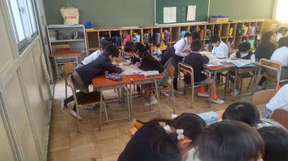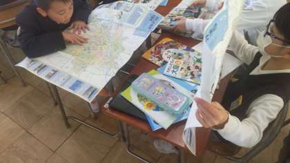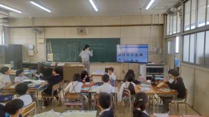 大阪市の地図を使って、先生が指定した場所を見つけています。