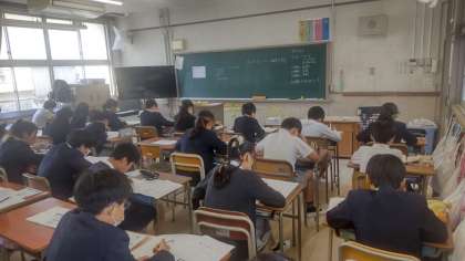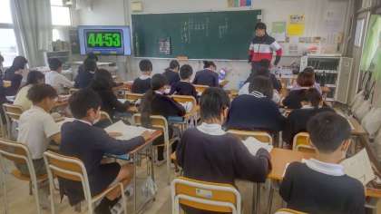 小学校6年生と中学3年生を対象として全国学力・学習状況調査に取り組んでいる様子です。