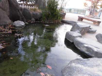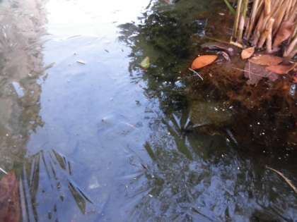せせらぎがあるので大丈夫。凍ってはいません。ニッポンバラタナゴは、落ち葉の下の池の底で、じっと春を待っていることと思います。