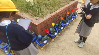 チューリップが咲いていたり、学年の畑に新しい芽が出てきたりと、身の回りには春がいっぱいです。