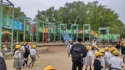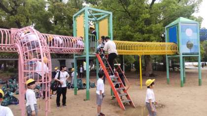 せっかくなので、大阪城公園の遊具で少し遊んでいます。