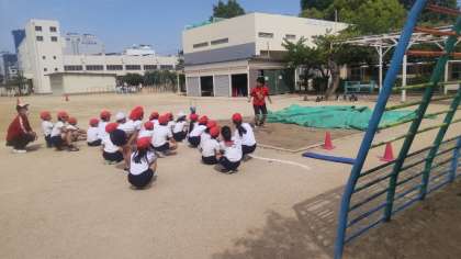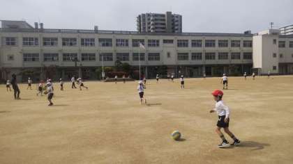 体育の時間はもちろん、休み時間も校庭では子ども達が汗をいっぱいかいています。