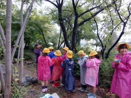 シニア自然大学さんの指導のもと、えのもとの森の自然観察を行いました。