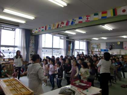 英語がご堪能な地域の方を招き、英語のうたやあそびを体験しました。