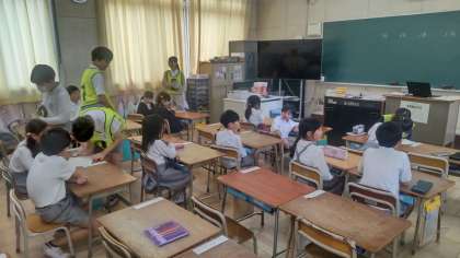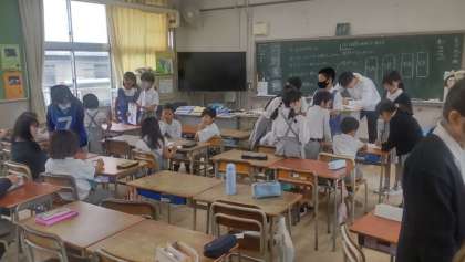 1年生は6年生が迎えに行って、班ごとに決められた教室に移動します。