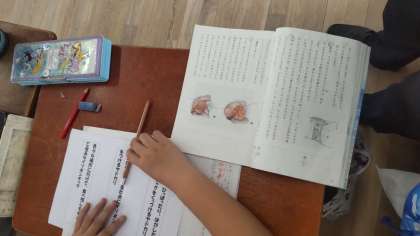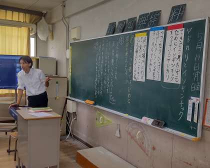 段落のまとめを使って、段落の順番を考える授業の様子です。